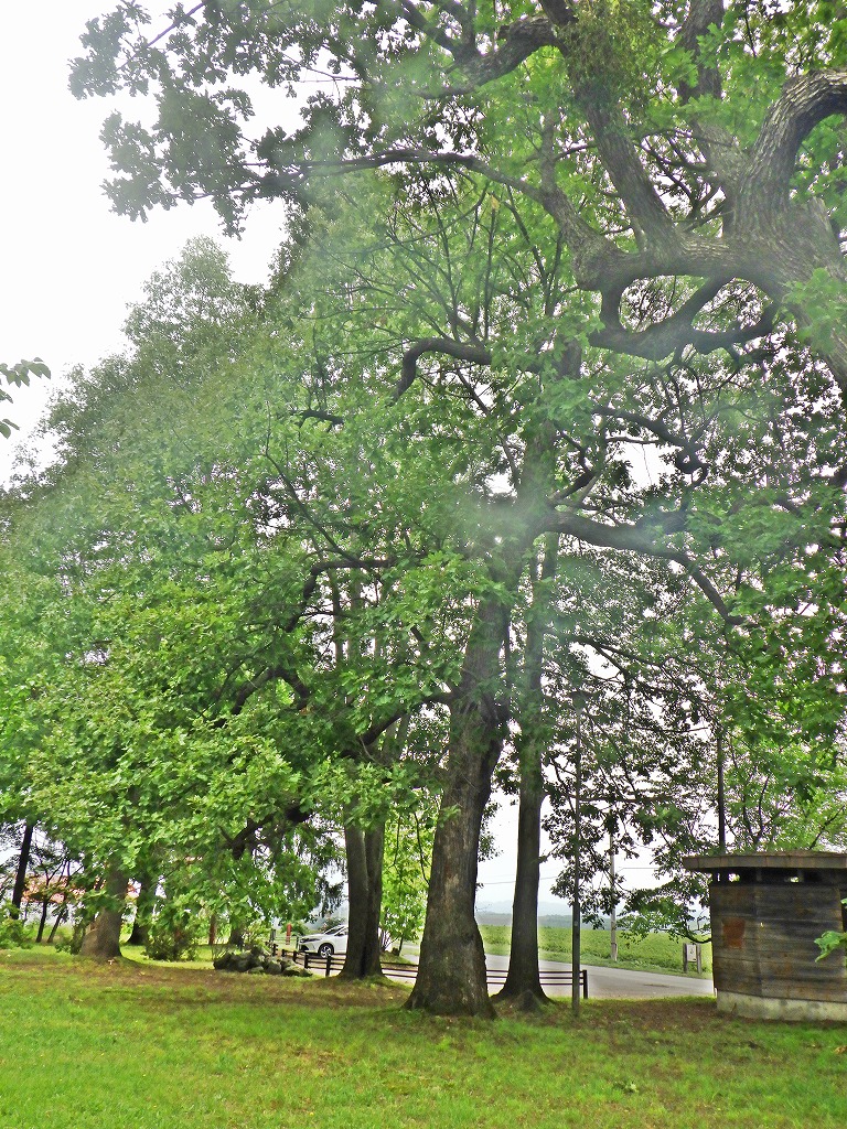 美瑛町北瑛の明治神社は数多くのナラの大樹があり、