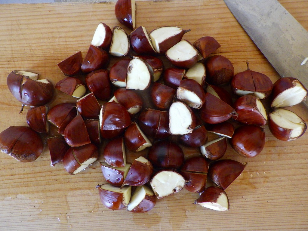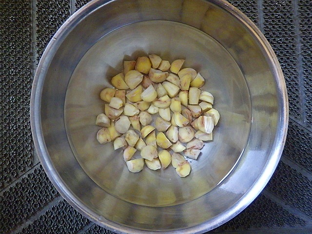 春に保存した山菜エゾニュウほかと秋の味覚栗の出番です
