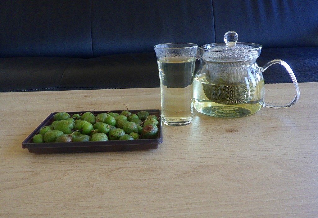 コクワ(サルナシ)をおやつにゲンノショウコのお茶でティータイム