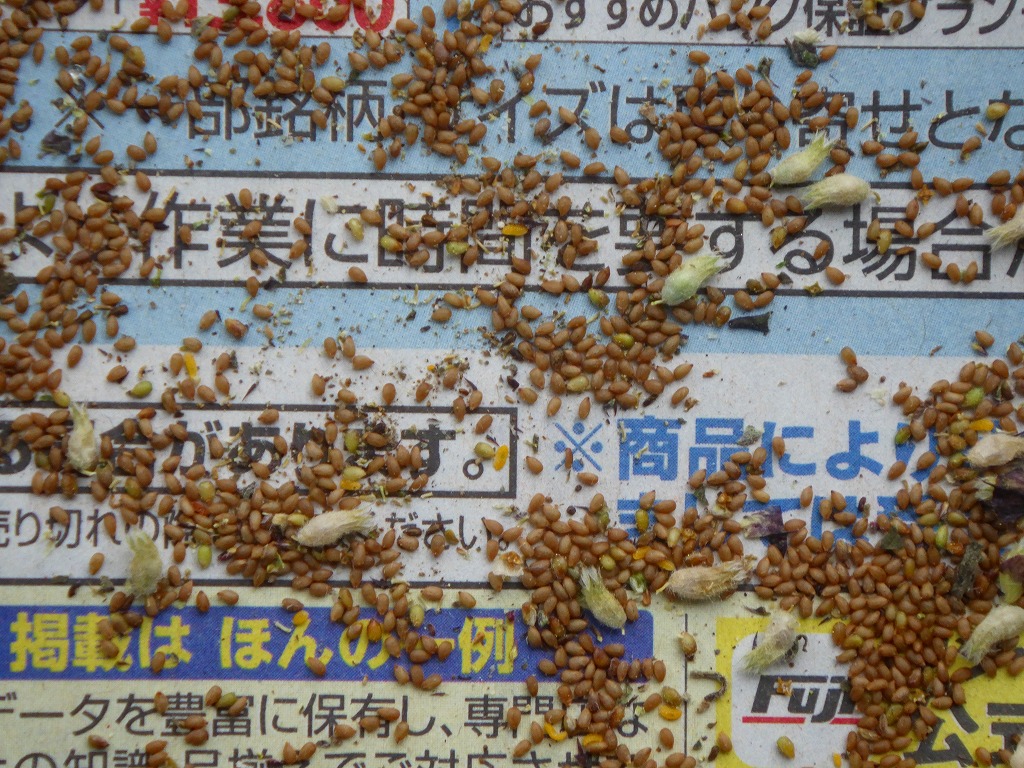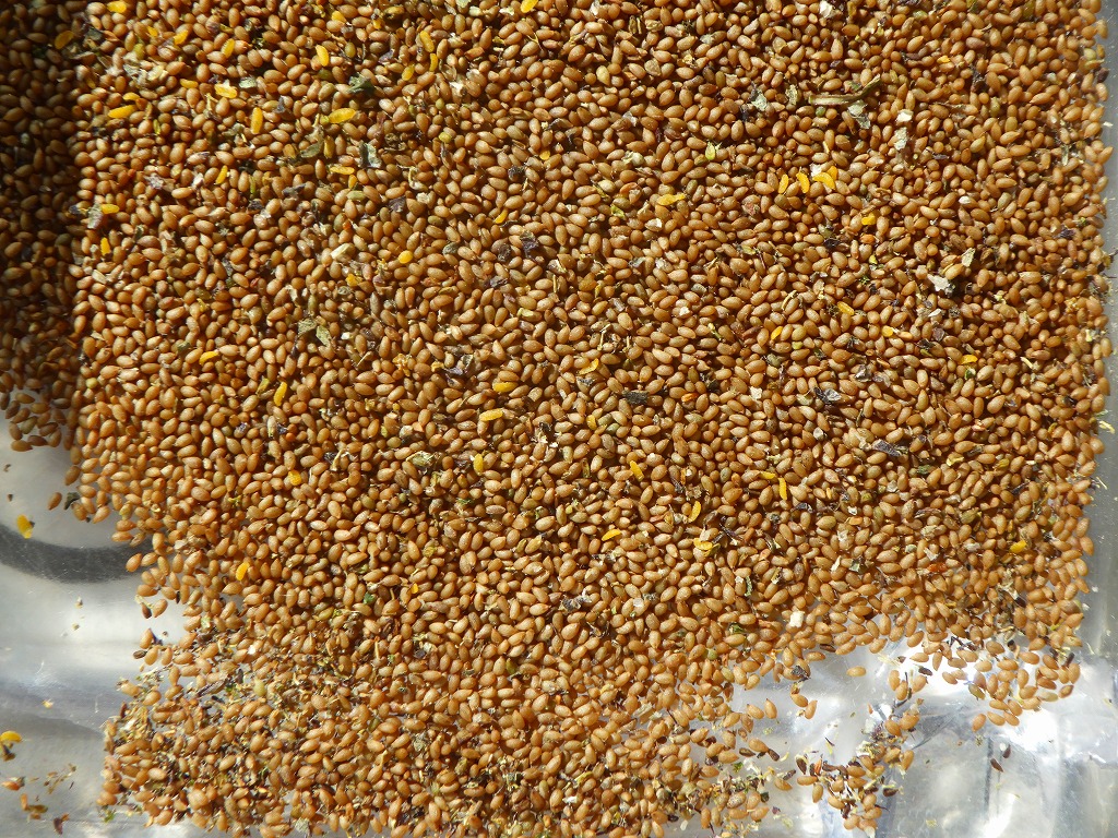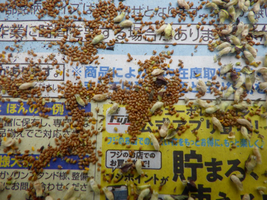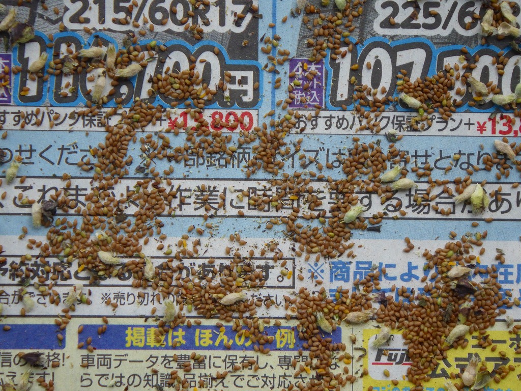 夾雑物と分離しきれなかった種子は裏庭にすでに