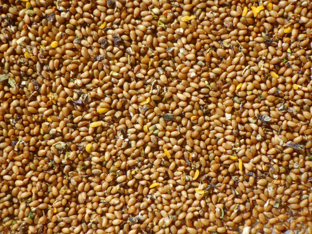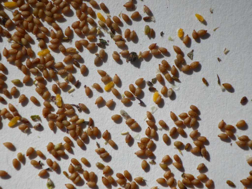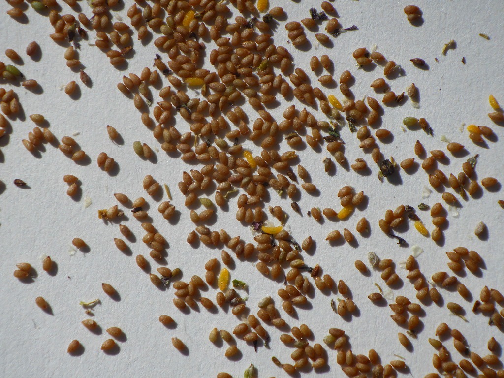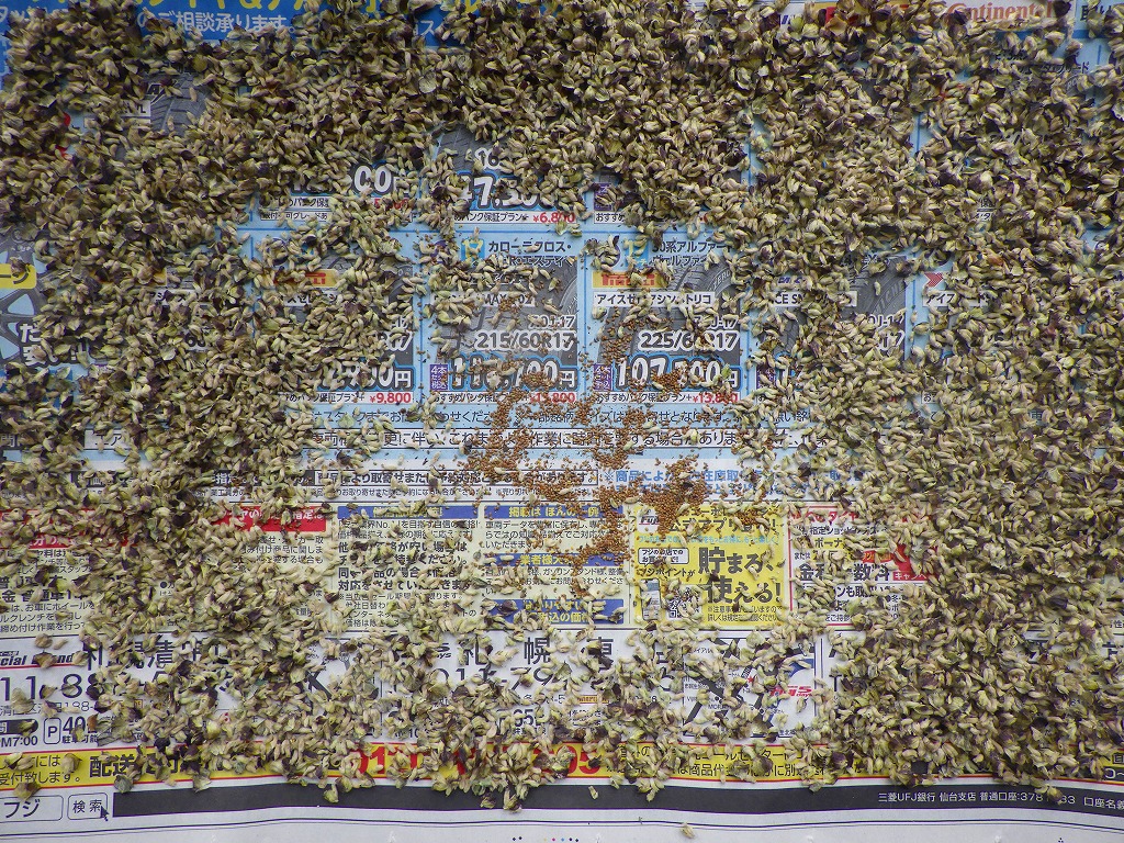 夾雑物と分離しきれなかった種子は裏庭にすでに