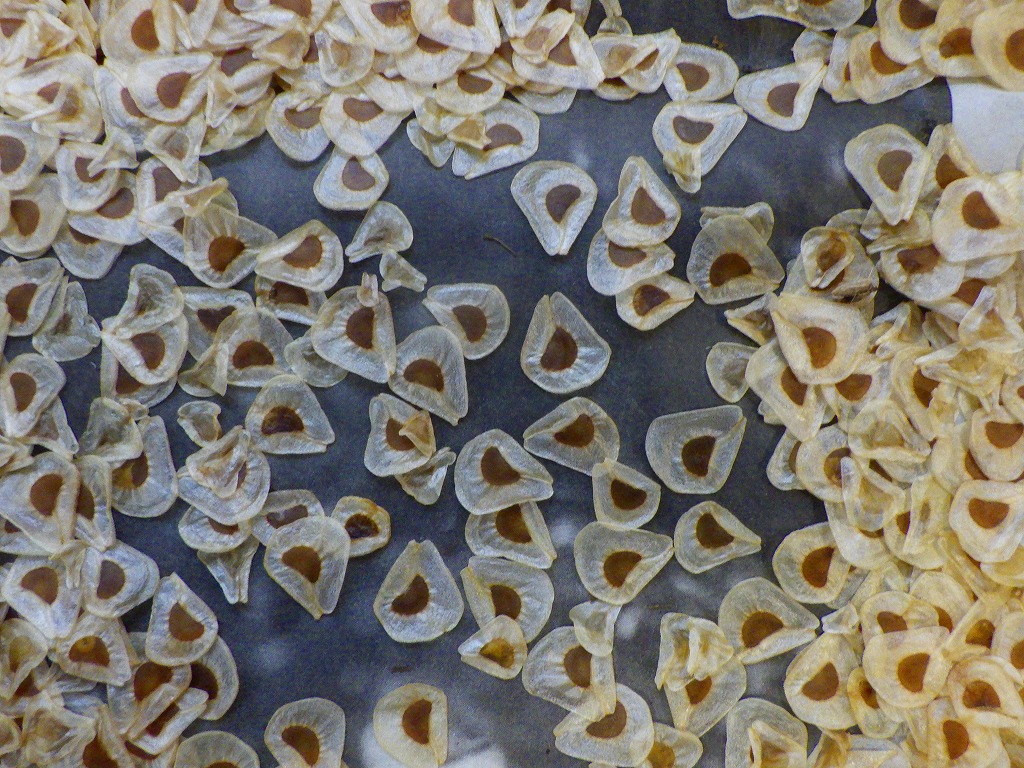 種子の構造も周囲に翼のような白い薄片があり