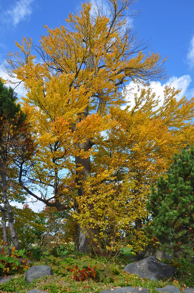 忠別ダム湖底に沈む地から移植された樹齢300年の桂