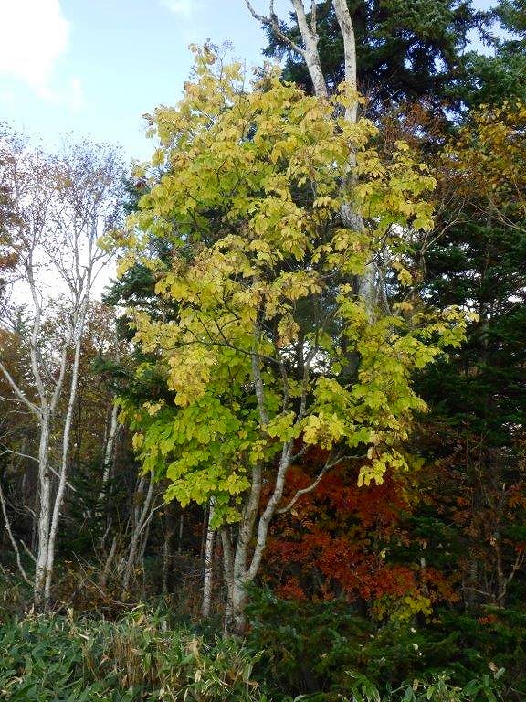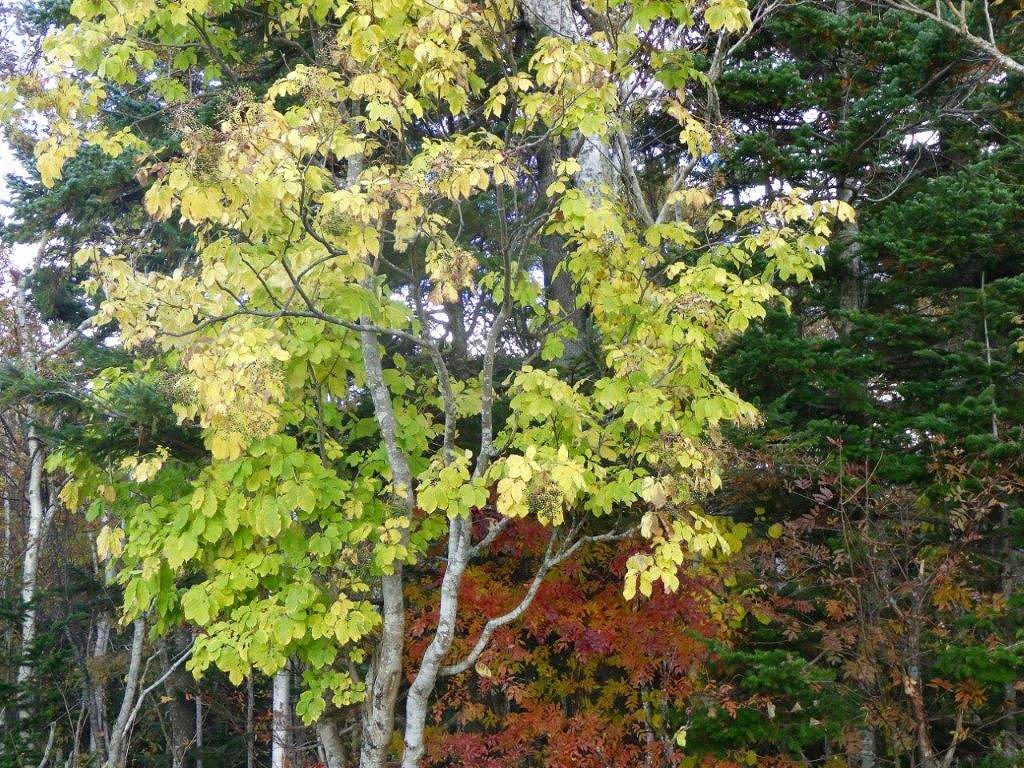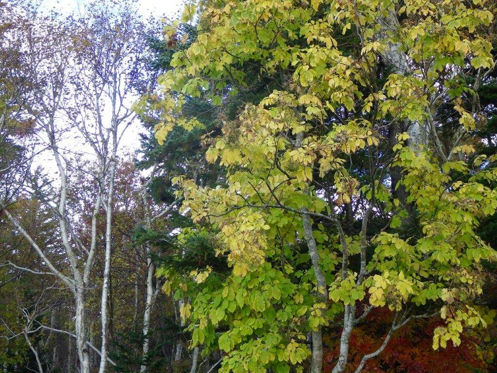 美瑛町白金 コシアブラ紅葉期の果実登熟遅れと熊