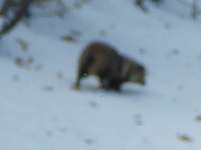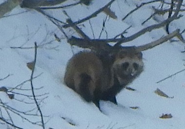 エゾタヌキが撮影されています。下段は拡大したものです。