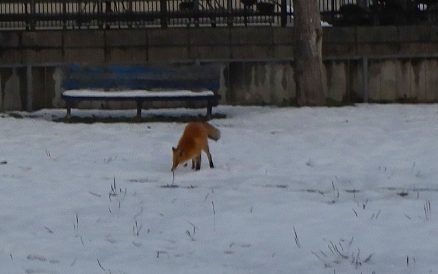近隣に河川もない住宅密集地なんですが、隣り合う公園にキタキツネです
